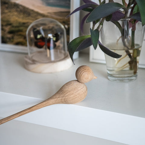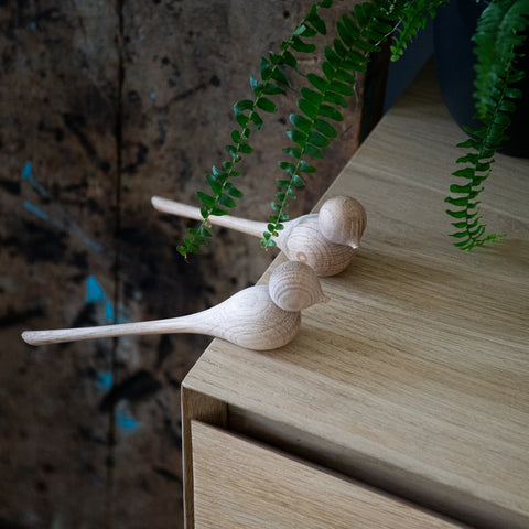 Der originale Glücksvogel aus Eiche ist ein solches Symbol. Handgefertigt aus massiver Eiche, sorgfältig geformt in eine fließende, raffinierte Form, die Ruhe und Einfachheit ausstrahlt. Kein Vogel ist genau gleich, denn jedes Stück Holz trägt sein eigenes Muster, seine eigene Geschichte.